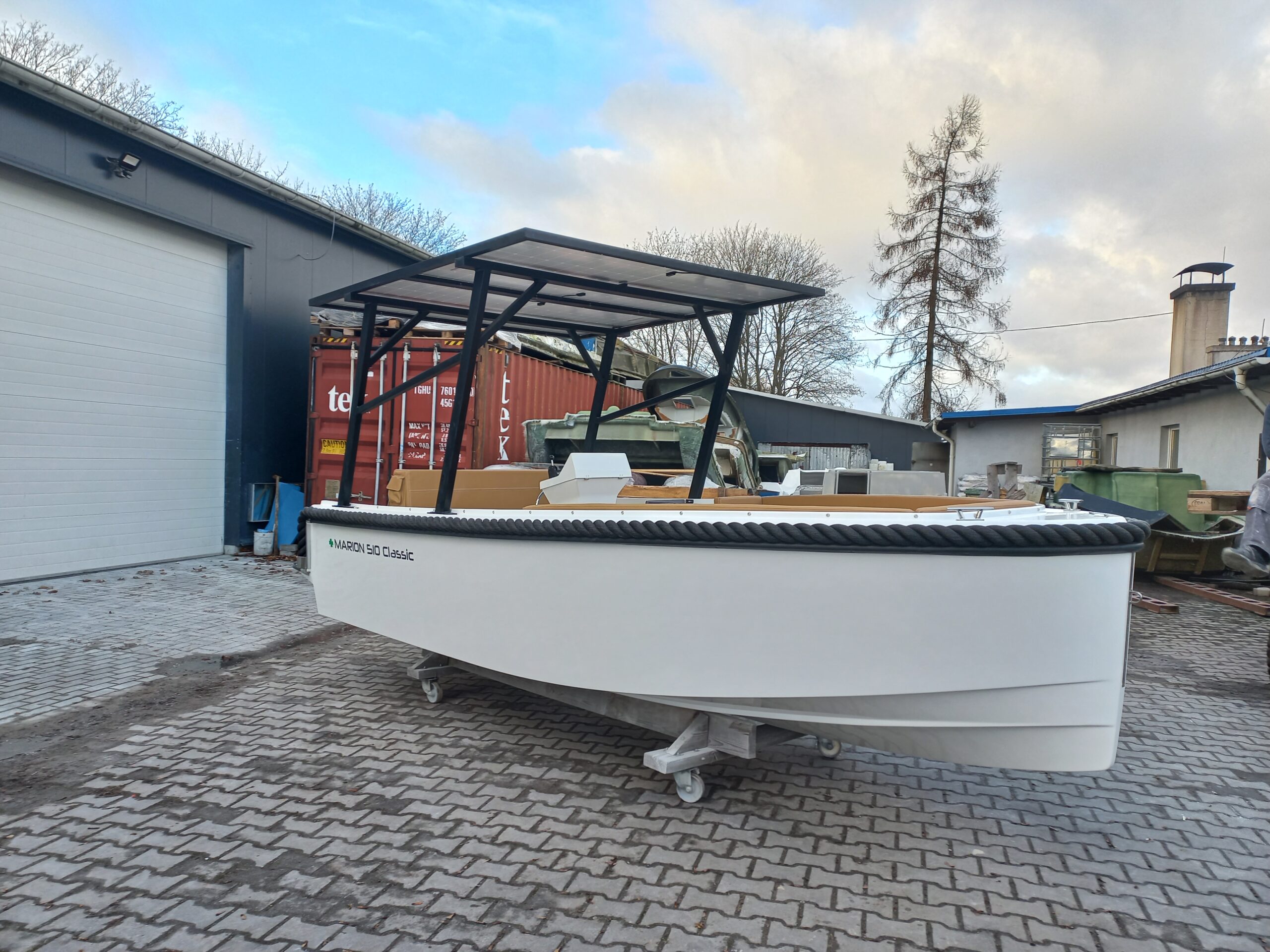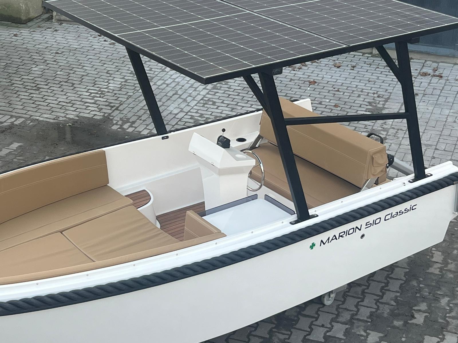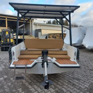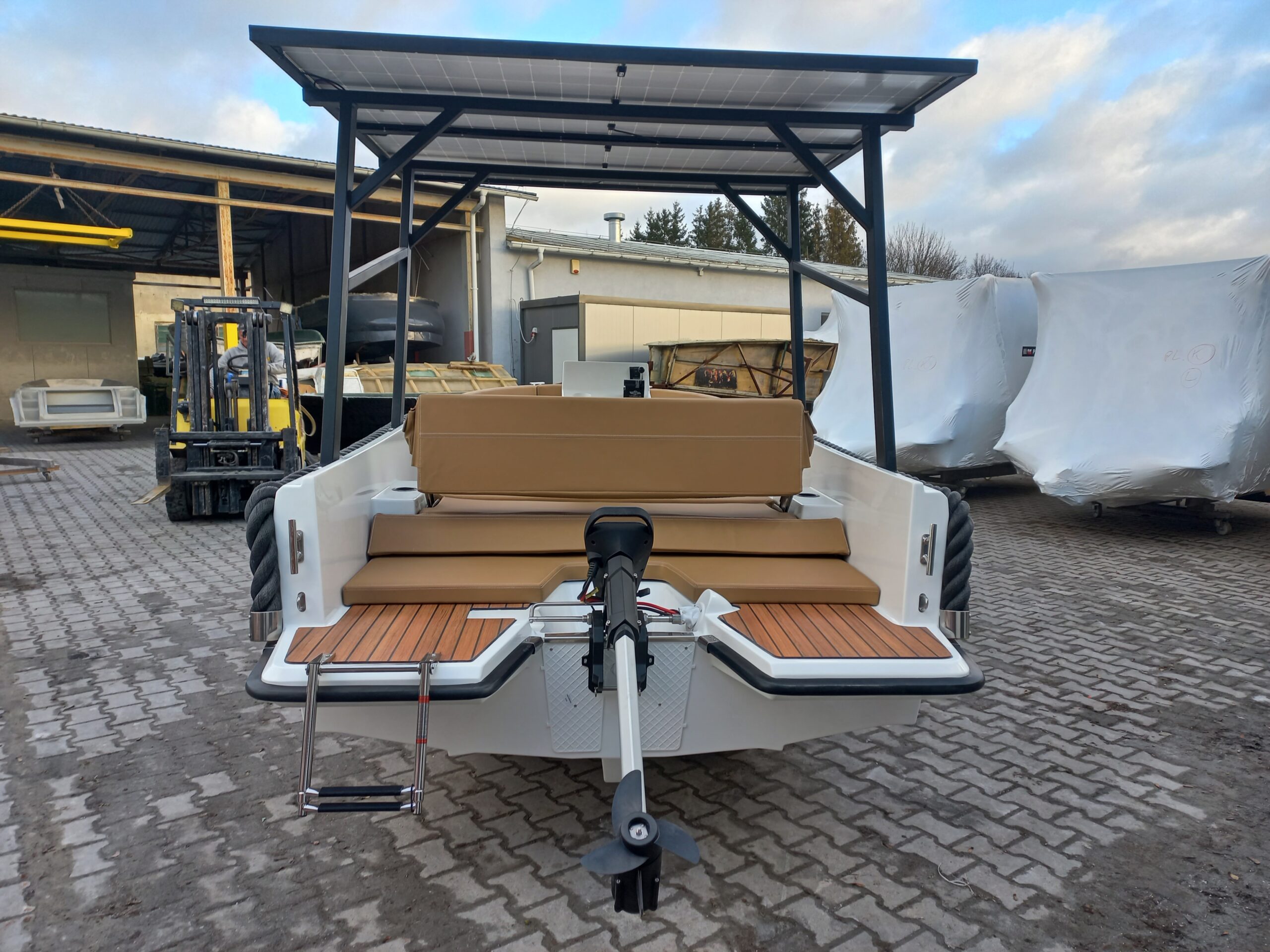 Do łodzi można zamontować dowolny silnik elektryczny o mocy od 1 kW do 6 kW. Ponadto istnieje możliwość zainstalowania dachu z panelami solarnymi o mocy 1 kW.