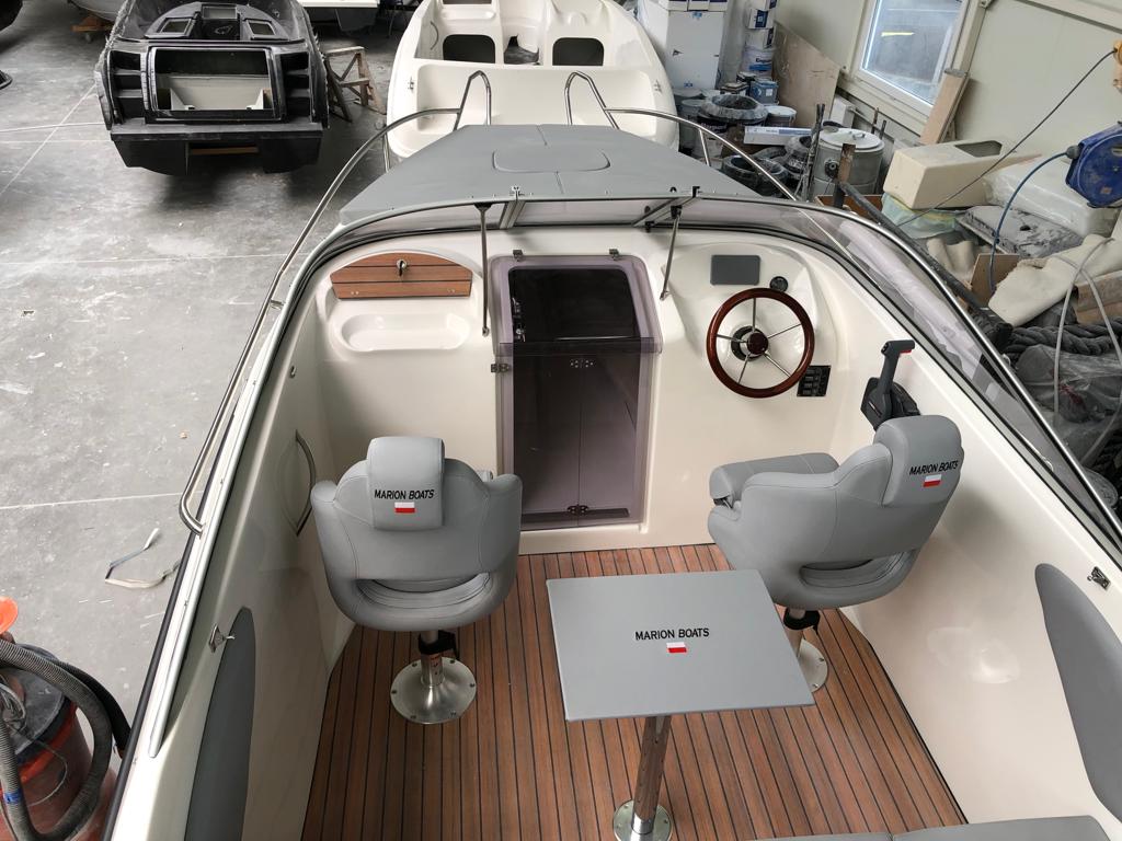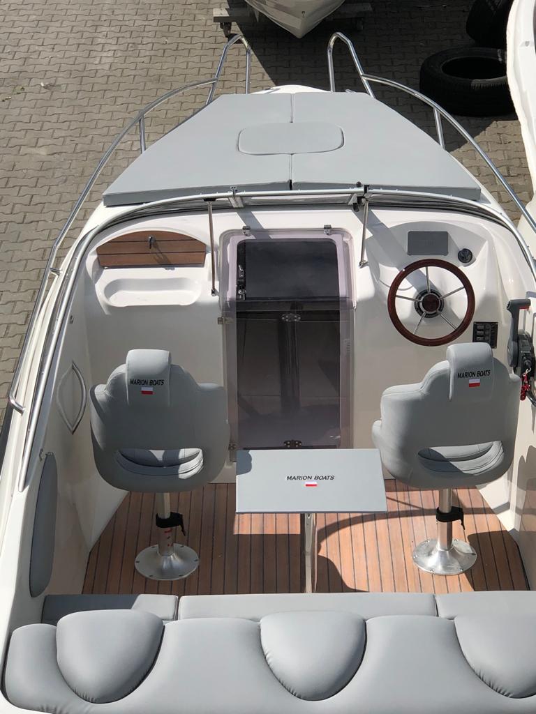 Kabinowa łódź Marion 630 DC posiada na tyle niską kabinę, że nie traci właściwości nawodnych ani stylistyki łodzi sportowej, a jednocześnie na tyle przestronna, że zapewni dwóm dorosłym osobom wygodny nocleg. Łódź budowana jest w wersji pod silnik zaburtowy lub pod silnik stacjonarny.